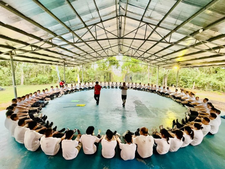 抵达基地,专业教练团队通过精心设计的“破冰导入”和“百分百团队”宣誓活动,瞬间打破了彼此间的隔阂,点燃了团队激情。响亮的队名、嘹亮的口号、独特的团队造型,展现了优百特人创意无限、活力四射的风采。