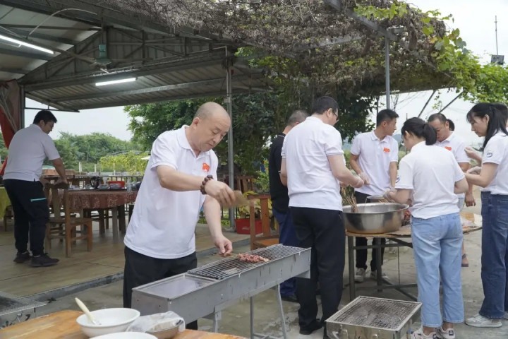雨后的风,清爽微凉,黄埔军校游览回来后,我们组织了团建BBQ及KTV活动,让大家告别紧张的工作旋律,伴着金秋的微凉,感受大好时光。为了让大家享受最美好的盛宴时光,我们顾总早早到场准备食材,安排洗净切好,浇上烤汁腌制,待我们集体到位,不由分说立马开工穿串,开火上烤,大块肉串无不散发着东北“重工业”的浓厚香醇,又伴着南方细腻的烤制技术,实乃让人大快朵颐!